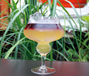 Alle Zutaten bis auf den Rotwein im Mixinglas mit viel Eis shaken und in einen Tumbler gefüllt mit viel Eis abseihen.