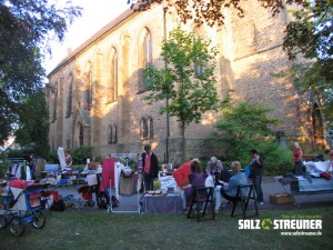 Tolle Schnäppchen, gelöste Atmosphäre, Einkaufen im Kreis: Shoppen und Schwatzen können nicht nur die Frauen, wie die Bilder beweisen. Zum Glück wurde bei dem von der Gleichstellungsbeauftragten Annette Kindler-Lurz initiiertem Frauenflohmarkt am Freitag keine Geschlechtskontrolle durchgeführt. Diese auch „Nachteulenflohmarkt“ genannte Veranstaltung fand erstmalig rund um die evangelische Kilianskirche in Schötmar statt; sie startete um 17 Uhr und man konnte auch gegen 21.30 Uhr noch tolle Schnäppchen schlagen, auch wenn einige Händlerinnen bereits einpackten. Zwei Frauen erfanden gar den „Nachteulenschlussverkauf“ und boten die bislang unverkauften Teile für nur einen Euro pro Stück an, was ihnen noch einen guten Zulauf bescherte, denn Geiz kann tatsächlich geil sein. Die meisten Verkäuferinnen waren mit ihrem Umsatz einigermaßen bis sehr zufrieden. Das kirchliche Ambiente und die kreisförmige Anordnung der Händlerinnen gefielen den meisten, so dass der nächste Flohmarkt wieder in Schötmar stattfinden könnte, so Kindler-Lurz.