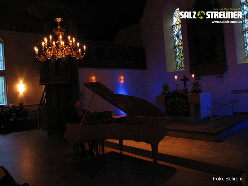 Der studierte Musiker und Musiklehrer entlockte dem Instrument wunderbare Töne und verriet auf humorvolle Art und Weise einige Details zu den Stücken. Die anschließende Kollekte dient dem Erhalt der Kirchenmusik. Danach gab es Wein und Häppchen im Gemeindehaus; viele Gäste nutzten die Chance ins Gespräch zu kommen und gleichzeitig dem Musiker am Piano weiter zu lauschen.