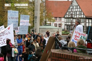 Mit viel „Rabatz“ gegen Kürzungen: Knapp 350 Kinder, Eltern, Erzieher und Angehörige demonstrierten gestern auf dem Salzhof gegen Einsparungen im Kinder- und Jugendbereich. Initiator Dieter Borgstedt und die Mitstreiter der Initiative „Kinder sind Zukunft“ hatten über Flyer und Facebook zu dem lautstarken Zeichen aufgerufen, um sich gemeinsam gegen Einsparungen zu Lasten von Kindern und Jugendlichen zu wehren. In Ansprachen forderten sie unter anderem die Rücknahme der Erhöhung der Elternbeiträge für Kindertageseinrichtungen und eine Aufhebung der zwangsweisen 25-Stunden-Kontingente.