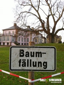 Was auch immer sich darunter befindet, Sorge bereitet aktuell die Linde selbst. Bei der Begutachtung durch einen Sachverständigen wurde eine unmittelbare Gefahr für Leib und Leben der Spaziergänger festgestellt, woraufhin der „Einzugsbereich“ der Linde großflächig abgesperrt und beschildert wurde. Vor allem die Schilder „Baumfällung“ sorgten in der Folge für wildeste Spekulationen und erwiesen sich somit als eine suboptimale Wahl. Denn tatsächlich ist keineswegs vorgesehen, die gute alte Linde komplett zu fällen, vielmehr geht es darum, dass sie massiv zurückgeschnitten werden muss, um auch den kommenden Winter schadlos zu überstehen und uns in gewohnt farbenfroher Pracht im Frühjahr 2012 im Schlosspark zum Verweilen einzuladen.