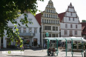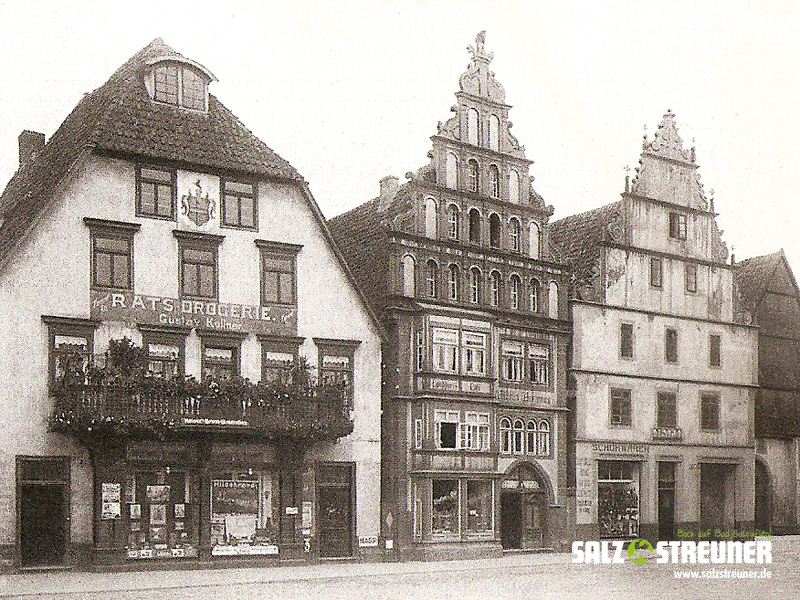 Auch die Gebäude rechts und links zählen zu den Orten, an denen jeder Salzufler schon einmal war: Wer erinnert sich nicht daran, bei Schäfer schon mal Utensilien für den Kunstunterricht gekauft zu haben? Rechts davon stand übrigens früher noch ein weiteres Fachwerkhaus, das jedoch der Otto-Künne-Promenade zum Opfer fiel. Trotzdem noch immer ein sehenswertes Ensemble.