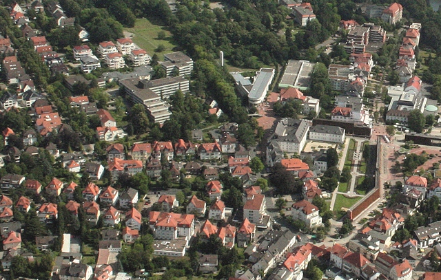 In der Roon- und Moltkestrasse sind viele der alten Kur-Pensions-Villen erhalten geblieben, doch dazwischen erheben sich immer wieder größere Bauten wie etwa der Roonhof. Oben rechts steht der Klotz der Klinik am Kurpark, wo vorher die Villa Johanna mit ihrem parkähnlichen Grundstück stand. Hinter den Villen der Parkstraße sieht man einen großen Anbau. Der Vergleich beweist immerhin, dass Bad Salzuflen in den letzten 50 Jahren immer grüner und baumreicher geworden ist. Viel Spaß beim Suchen weiterer Unterschiede!