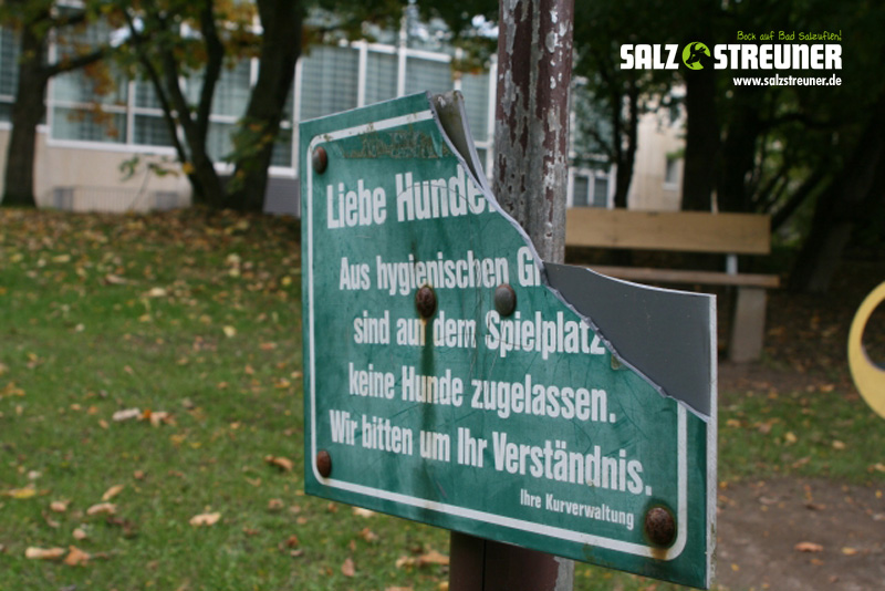 Günstiger zu haben ist dagegen das Wildbaden, Wildzelten, Fahrrad fahren außerhalb gekennzeichneter Wege und das Betreten nicht freigegebener Eisflächen (wie etwa dem Kurparksee). Ab 10 Euro ist man hier dabei. Das „Verrichten der Notdurft“ in die Salze kann ein Bußgeld zwischen 15 und 200 Euro nach sich ziehen – ein teures Vergnügen also. Die gleichen Kosten kann jemand erwarten, der im Kurpark oder auf dem Salzhof nächtigt, „insbesondere auf Bänken und Stühlen sowie das Umstellen von Bänken und Stühlen zu diesem Zweck.“