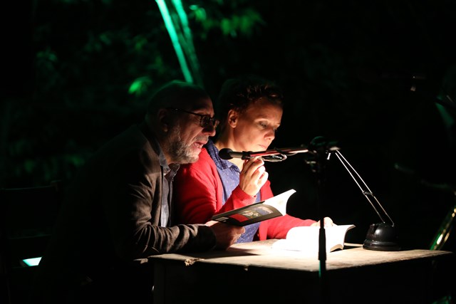 Auch das literarische Programm war in diesem Jahr besonders: Bewusst wurden bei der fünften Veranstaltung nicht-lokal ansässige Autoren engagiert. Nur Voehl selbst las aus einem lippischen Regionalkrimi der lippischer nicht sein konnte. Sein „Mörderischer Kurschatten” erscheint im September und man muss kein Prophet sein, um den Handlungsort zu erraten. Trotz der grausamen Auszüge aus seinem neuesten Roman, versicherte Voehl, dass es in dem Krimi durchaus auch heiter zugehen soll.