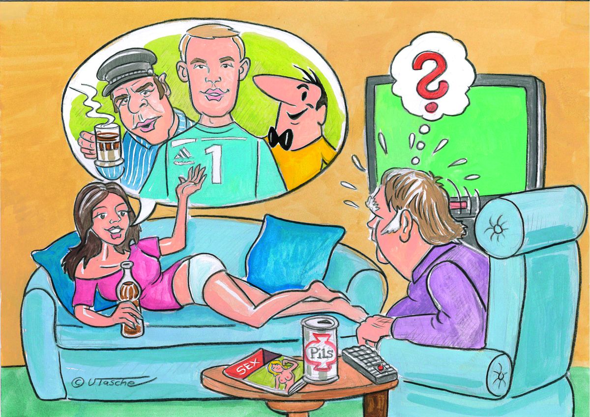 Neulich öffne ich die Augen, und die Frau aus der Manuel-Neuer-Werbung liegt vor mir auf der Couch. „Wenn du willst, kannst du alles haben. Dann bin ich gar nicht deine Freundin, sondern …“