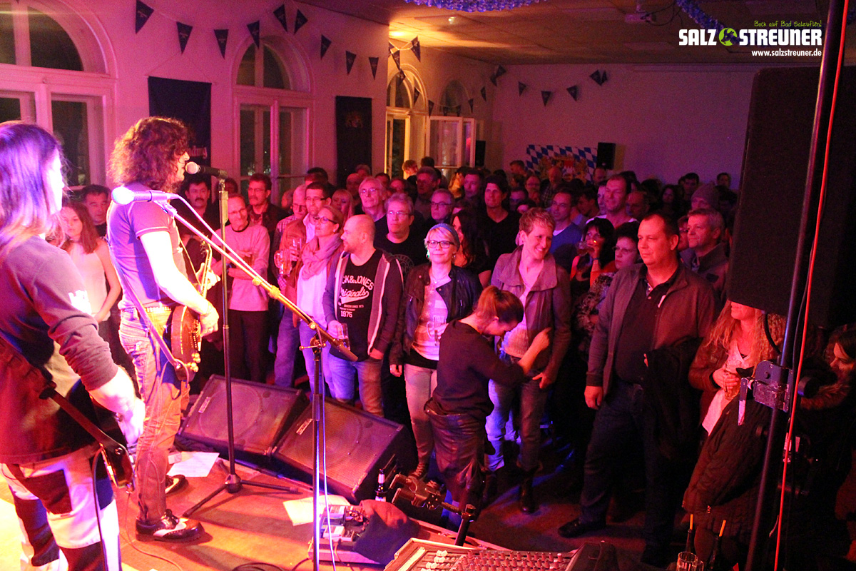 Einige Bands waren Wiederholungstäter und konnten sich auf ihre Fangemeinde fest verlassen. Während also drinnen gefeiert und getanzt wurde, wurde die Stimmung vor den Türen auch langsam besser. Selbst das Wetter wurde im Laufe des Abends kooperativer, so dass der Weg zwischen Frankis und Salzsieder, zwischen The View und Backs auch wieder trockenen Fußes zurückgelegt werden konnte. Wenn wir uns für das Honky Tonk 2016 etwas wünschen könnten, dann wären es besseres Wetter und mehr Locations …