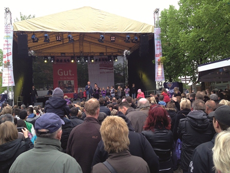 Der Mann ist knapp über 60 und seit über 35 Jahren auf der Bühne zu Hause – und ausgerechnet vor 150 Menschen im Bahnhof bekommt er das Flattern. Wolf Maahn war die Nervosität vor seinem ersten Gig in Bad Salzuflen deutlich anzumerken. Ein Tourstart mit neuer CD und neue, wieder einmal etwas andere Maahn-Songs machen selbst einem gestandenen Kerl wie Maahn die Knie weich. Das beste Mittel: Raus gehen und spielen. Das tat der Wahl-Kölner dann auch – und er tat es gut. Das dankbare Publikum hat es ihm und der Band leicht gemacht. Die ersten fünf Songs (allesamt von der neuen CD Sensible Daten) wurden wohlwollend aufgenommen, bevor Maahn mit Freie Welt (1992) und Irgendwo in Deutschland (1984) zum ersten Mal die musikalische Zeitmaschine anschmiss. Von da an konnte Wolf Maahn kaum noch etwas falsch machen. Das Publikum feierte ihn, die Band, die Songs. Zweieinhalb Stunden lang. ta