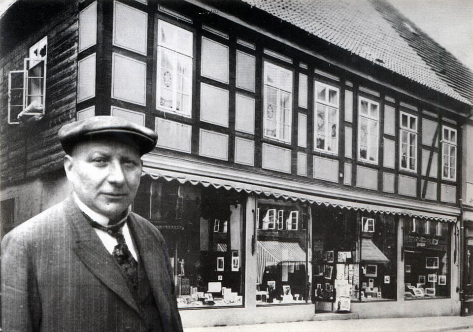 1876 gründete Emil Maschke ein Geschäft für Schulartikel in der heutigen Brunnengasse, die einst als Schülerstraße zur Schule auf dem Hallenbrink führte. Der 22-Jährige war mit seiner Familie aus dem pommerschen Konitz nach Bremen gezogen, von wo aus ein Teil seiner Angehörigen nach Amerika auswanderte. „Ich sag immer, dass er sein Schiff verpasst hat und deshalb in Deutschland blieb”, scherzt Corinna Klassen, die sich mit der Familiengeschichte und dem Firmenarchiv beschäftigt hat. Als Emil 1889 stirbt, führt seine Ehefrau die Geschäfte fort, bis Sohn Friedrich Emil (Foto) nach einigen Lehr- und Wanderjahren in die Stadt zurückkehrt.