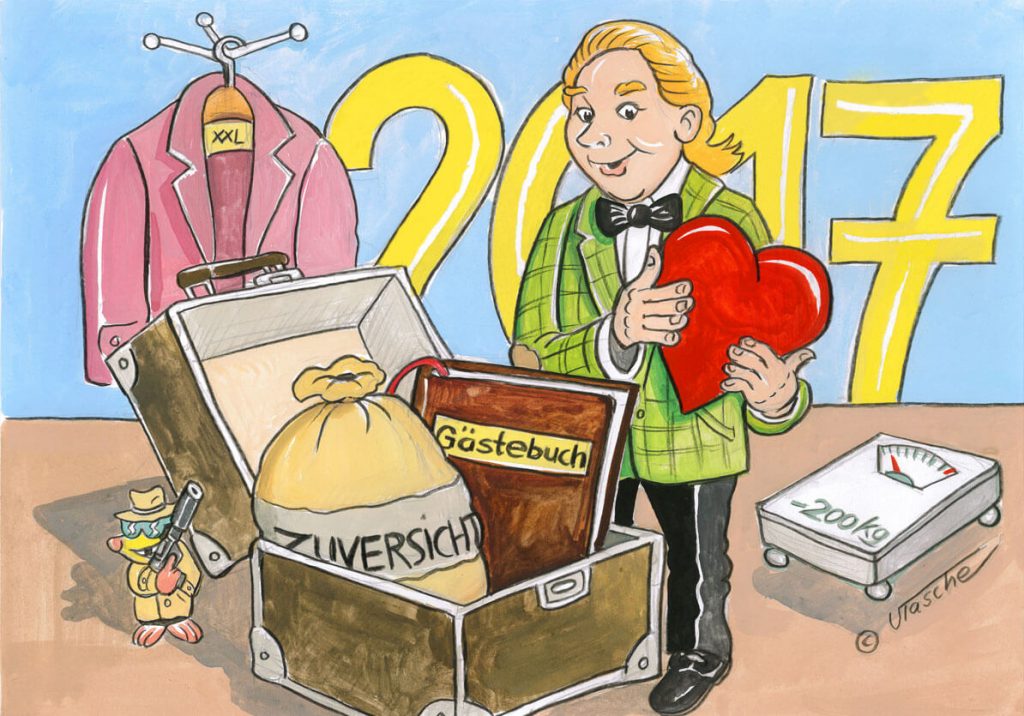 Bis dahin nimmt im Koffer ein neues Sakko ihren Platz ein. Schließlich gilt es, die ins neue Jahr mitgeschleppten Pfunde möglichst vorteilhaft nicht zur Schau zu stellen.