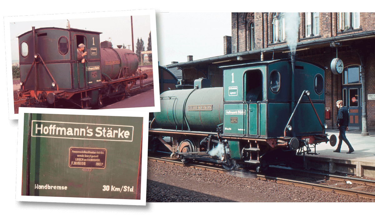 So war es auch im Jahr 1880, beim Anschluss von Bad Salzuflen an das große Netz der Eisenbahn. Bereits ein Jahr zuvor durfte Hoffmann’s Stärke das fertige Gleis von Salzuflen nach Herford nutzen, um mittels Pferdebahn die eigenen Produkte an die Eisenbahn zu liefern. Schon bald setzte man aber auf die Dampfkraft, um Stärkeprodukte auszuliefern und Rohstoffe anliefern zu lassen.