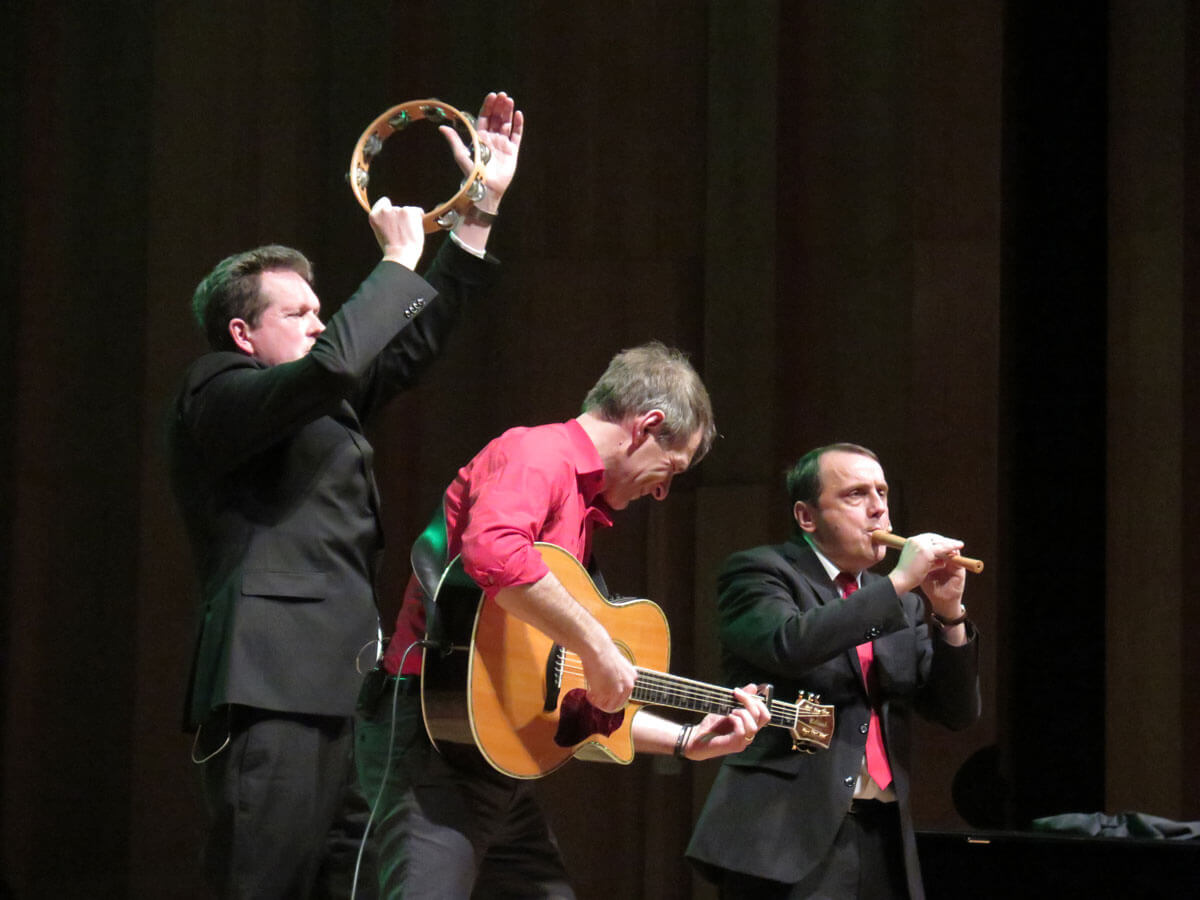 Die Münsteraner Comedians begeisterten ihr Publikum in der Konzerthalle mit Wortwitz, Pantomime und musikalischen Einlagen. Kants Definition von Würde (alles, was über einen Preis erhaben ist) wurde in den Kontext mit dem desolaten Wohnungsmarkt und der Alten- bzw. Krankenpflege gesetzt. Total in the Digital World war Thomas Philipzen, der sich über das ständige Ping in seiner Hose freute. Harald Funke sang über die schöne neue Welt: „Ein neues Päckchen von Zalando, sie ist heiß auf Lieferando.“ Jochen Rüther beklagte das intuitive Denken, das sogar die Schafherde für die Steuerfreiheit ihrer Metzger stimmen lässt.Vieles machte nachdenklich: Lobbyismus, Dieselaffäre, Stimmungsdemokratie (Emotionen statt Inhalte) und Wirtschaft (Klick-dich-ins-Knie-Ökonomie statt Ladengeschäfte). Für die gute Nachricht sorgte der deutsche Schüler, der Politiker-Daten hackte. Immerhin war es kein Russe oder Chinese. gabe