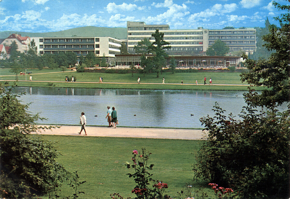 Kurparksee, Seeterrassen und Lipperlandklinik um 1970 // Foto: Stadtarchiv / Sammlung Meinardus